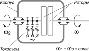 В электротехнике известен так называемый биротативный двигатель: в одном статоре расположены два одинаковых ротора, связанных между собой не механически, а только общим электромагнитным полем. Оси роторов совпадают, а ведущие валы выходят каждый в свою сторону у левого ротора – в левую, у правого – в правую (рис.1).