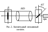 Рассмотрим теперь амплитудные и фазовые невзаимные элементы /АНЭ и ФНЭ/ на основе эффекта Фарадея. В простейшем случае оптика АНЭ состоит из пластинки специального магнитооптического стекла, содержащего редкоземельные элементы, и двух пленочных поляризаторов /поляроидов/. Плоскости пропускания поляризаторов ориентированы под углом