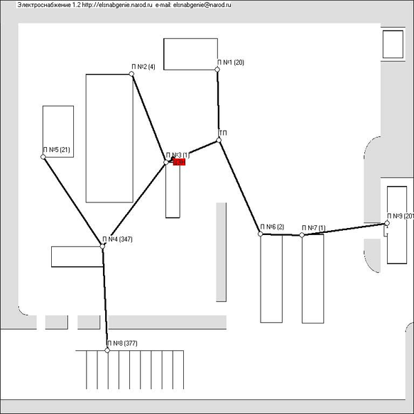 Координаты потребителей низковольтной сети заносятся в табл. 2