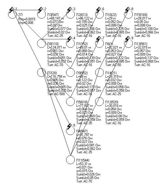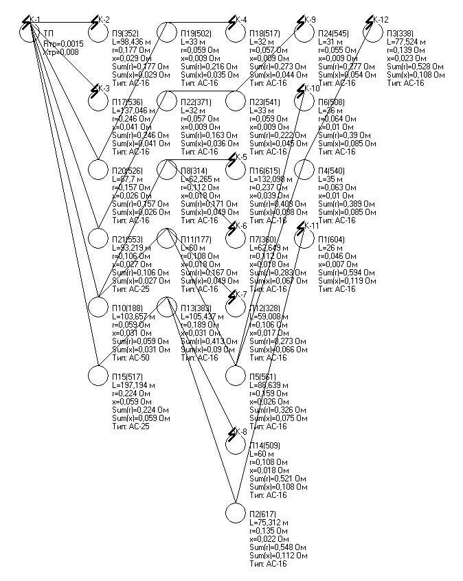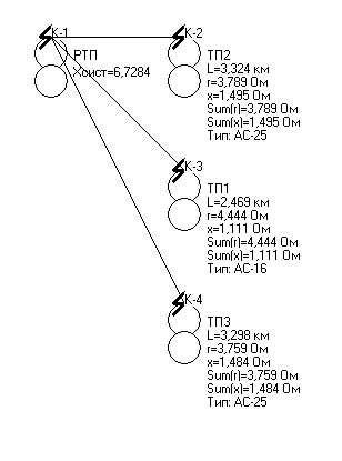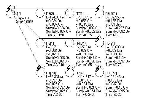 Токи короткого замыкания в сети 0,38 кВ определяются в следующих точках: на шинах 0,4 кВ ТП и в конце каждой отходящей линии.