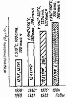 Рабочие температуры современных жаропрочных сплавов составляют примерно 0,5-0,8 Тпл, а в ряде случаев 0,8-0,9 Тпл, время применения изменяется от нескольких часов до нескольких лет, напряжения - от нескольких до десятков Мн/м2.