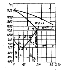 Рис. 31. «Стальной» участок диаграммы состояния железо—цементит:
