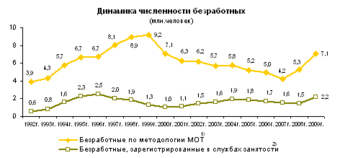 Таким образом, суммируя официальные показатели безработицы и «предбезработицы» на конец первого квартала 2009 года, можно говорить о крайне серьезных проблемах на рынке труда в отдельных областях и в Российской Федерации в целом.