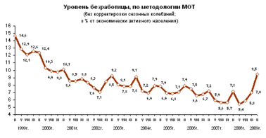 По данным Росстата, в 2009 году проблемы на российском рынке труда выглядят более серьезно, чем декларируемая в СМИ общероссийская цифра безработицы — 9,5%. Общий показатель уже на 2,5-2,4 процентного пункта выше, чем в ноябре-феврале 2008 года.