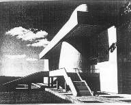 Примером этой композиции служит сооружение с примененным в нем тонкостенным железобетонным покрытием, которое представляло поверхность гиперболического параболоида (Мексика)