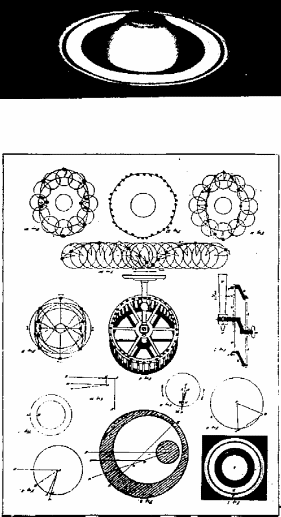 Рис.3 Механические модели, иллюстрирующие движение колец Сатурна. Рисунки из эссе Максвелла «О стабильности вращения колец Сатурна»