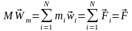 Скорость и ускорение центра масс (ЦМ) можно получить дифференцированием предыдущей формулы по времени.