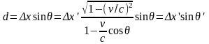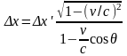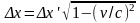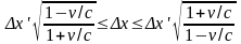 Допустим, что движущийся объект это линейка длиной x', ориентированная вдоль вектора скорости v. Нетрудно видеть, что наблюдаемая длина линейки будет зависеть от v и . Кажущаяся длина линейки: