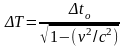 где ΔТ это наблюдаемое в системе К время между двумя вспышками, определенное с помощью преобразования Лоренца