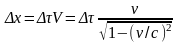 Теперь мы можем записать новую форму матрицы Лоренца, выразив кажущуюся скорость v в этой матрице через истинную скорость V.
