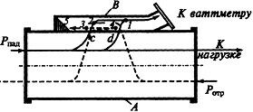 Около отверстия с, наоборот; складывают отраженные волны — точка 3 и взаимно компенсируются падающие — точка 4.В результате падающая волна поступает на ваттметр, а мощность отраженной волны рассеивается на согласованной нагрузке 5. Таким образом измеряется мощность падающей волны. Измерение мощности отраженной волны, необходимое для определения проходящей мощности, может осуществляться тем же ответвителем, или вторым, развернутым на 180°.
