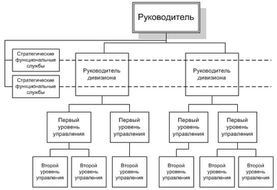 Так как наша компания слишком велика для таких простых организационных структур, как линейная или функциональная, то наша фирма строится на дивизиональной структуре.
