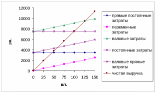 1. Порог безубыточности — это такая выручка от реализации (продаж), которая покрывает переменные затраты и постоянные прямые затраты. Он определяется в стоимостном и натуральном выражении по формулам: