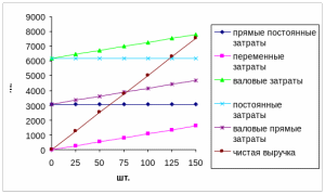 Рассчитанный показатель порога безубыточности свидетельствует о том, что предприятие сможет покрыть свои переменные и прямые постоянные затраты при производстве 23 трубок модели А, 5 трубок модели Б и 6-7 трубок модели В. Покрытие всех постоянных затрат (прямых и косвенных) возможно при выпуске 75 трубок модели А, 16 трубок модели Б и 21 трубки модели В.