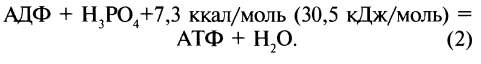 Второй процесс – фосфорилирование АДФ, или синтез АТФ, - эндергонический. Сопряжение реакции окисления восстановленных молекул и фосфорилирования АДФ и образования АТФ называют окислительным фосфорилированием.