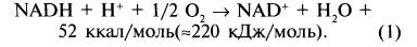 Первый процесс – перенос электронов от восстановлнных коферментов НАДН и ФАДН2 через цепь переноса электронов на кислород – экзергонический.