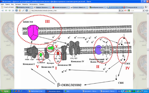 Точки приложения действия разобщителей окислительного фосфорилирования
