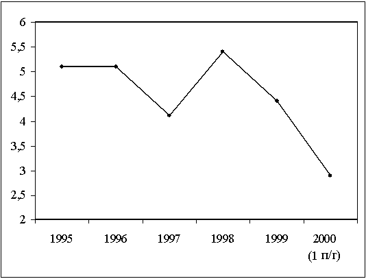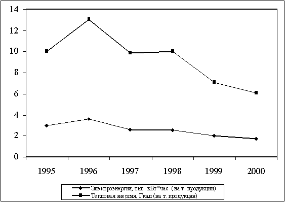 Осуществляемая в настоящее время на предприятии деятельность по охране окружающей среды в первую очередь направлена на соблюдение требований экологического законодательства, относящихся к источникам выброса и сброса загрязняющих веществ, размещению и удалению отходов. Однако, в последнее время деятельность ОАО "МШЗ" в области охраны окружающей среды постепенно начинает выходить за рамки требований законодательства: внедрена система управления качеством с учетом экологических аспектов выпускаемой продукции, повышается культура производства и технологическая дисциплина, минимизируется использование материальных и энергетических ресурсов. Система менеджмента качества в соответствии с требованиями международного стандарта ISO 9001 (ГОСТ Р ИСО 9001-96 "Системы качества. Модель для обеспечения качества при проектировании, разработке, производстве, монтаже и обслуживании") была разработана предприятием в 1996 году. В рамках системы осуществляется деятельность, связанная с управлением производственными процессами и управлением закупками, имеющая существенные экологические аспекты. Деятельность ОАО "МШЗ" в области управления качеством продукции является хорошей основой для внедрения системы экологического менеджмента, поскольку стандарты ГОСТ Р ИСО 9001-96 и ГОСТ Р ИСО 14001-98 имеют сходные структуры и в отдельных случаях (мотивация персонала, управление процессами и документацией) дополняют друг друга. После внедрения системы менеджмента качества были достигнуты очевидные результаты в повышении качества продукции и ресурсосбережении. На рис. 1-4 показаны сложившиеся устойчивые тенденции в снижении удельного потребления, сырья, материальных и энергетических ресурсов. Отдельные колебания, например в 1998 г. (рис. 2, увеличение образования отходов металлокорда) объясняются введением новой технологии.