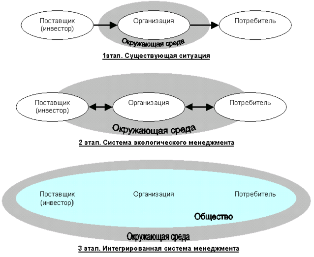 Рис. 6. Понятие "окружающая среда" на различных этапах развития экологического менеджмента.