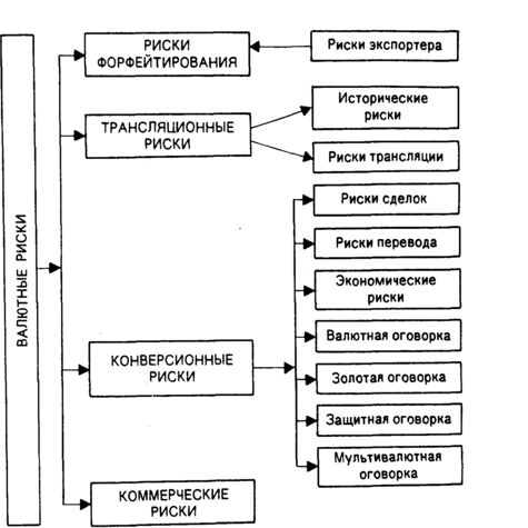 Со своей стороны, валютные риски структурируются следующим образом: коммерческие, конверсионные, трансляционные, риски форфейтирования (рис1 и 2).