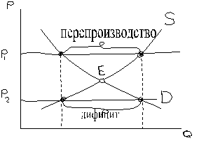 Дефицит - превышение спроса над предложением. Дефицит свидетельствует о несовпадении спроса и предложения и отсутствии уравновешивающей цены. Обычно дефицит свидетельствует о низком предложении, вызванном низкой ценой.