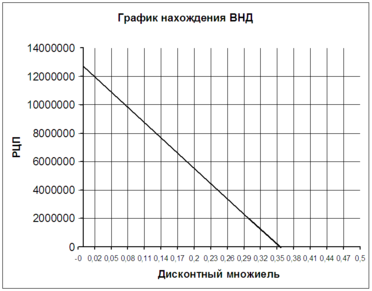 3. Нахождение ВНД, значения ставки дисконта, при которой РЦП равна нулю (РЦП=0).