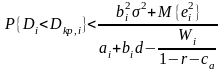 Из гипотезы Di = ai + biD + ei следует, что средний ожидаемый спрос на i-ом сегменте рынка di = M{Di} = ai + bid, а его дисперсия i2 = bi22 + M{ei2}. Тогда, считая, естественно, что di > Dкр,i, с помощью неравенства Чебышева P{Di – di > } < i2 / можно оценить вероятность убыточной работы франчайзи на i-ом сегменте рынка: