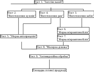На основі відпрацьованих технологій виробництва автопричепів і мікроавтомобілів, використовуючи придбаний кваліфікаційний рівень основних робітників, на базі власних і орендованих виробничих площ планується організувати дев'ять виробничих "постів" (технологічних переділів) (див. рис.1.1)" кожен з яких оснащується новим технологічним обладнанням, яке придбається за рахунок притягнутих (кредитних) коштів; устаткування, пристосування й інструмент для ділянки (цеху) антикорозійної обробки автомобілів також придбається за рахунок кредитних коштів (див. табл.2.1).