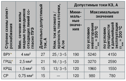 3. Для исключения перегрузок внутренней электропроводки номинальные токи защитных аппаратов необходимо выбирать ниже длительно допустимых токов защищаемых проводников.