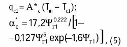 где qw1 и qc1 – локальные удельные тепловые потоки в стены и перекрытие; Tw1 и Tc1 – локальные температуры внутренних поверхностей стен (колонн) и балок перекрытий; α*w и α*c – приведенные ко эффициенты теплоотдачи стен (колонн) и перекрытия; Ψг1 = Mo/Fw; Mo – началь ная масса пожарной нагрузки; Fw – сум марная площадь внутренней поверхнос ти стен и перекрытия; εпр – приведенная степень черноты газовой среды помеще ния и облучаемой поверхности;
