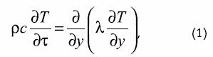 где ρ – плотность материала конс трукции; с – удельная теплоемкость материала конструкции; Т – температура; λ – коэффициент теплопроводности материала конструкции; у – координата, направленная по толщине материала; τ – время