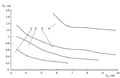 Рис. 1. Зависимости толщины сухого слоя краски «Терма» от приведенной толщины стальных