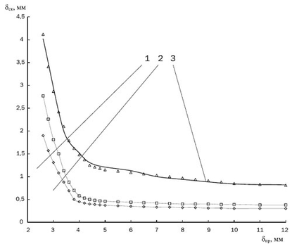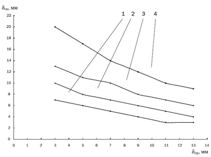 Обозначения на рис. 1–4 следующие: δск – толщина сухого слоя огнезащитной краски; δпр – приведенная толщина стальных конструкций.