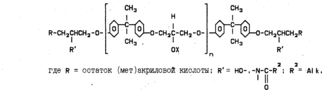 Строение основного компонента, полученного этерификацией эпоксиолигомеров акриловой кислотой, авторы выражают следующей формулой: