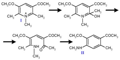 Ранее было показано [1,2], что рециклизация 3,5-диацетилпиридиниевой соли (I) под действием водно-спиртовой щелочи приводит к получению 2,4-диацетил-N,5-диметиланилина (II) с выходом 85% (схема 1).