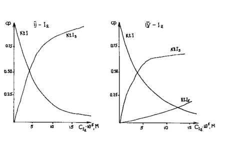 где А = 1 для KtI; A = 1 [I2] для трииодидов; A = 2 [I2] для пентаиодидов.