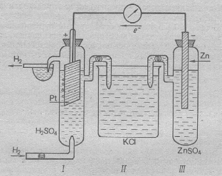 I – водородный электрод, II – солевой мостик, III – измеряемый электрод.
