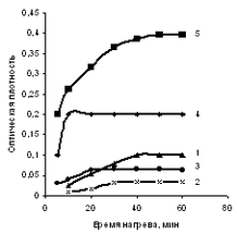 Как видно, максимальная скорость реакции деривации НДМГ альдегидами обеспечивается нагреванием при 80оС.