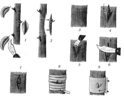 Окулировка. 1–9 – последовательность проведения