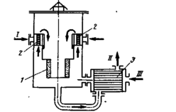 1—катализатор; 2—панельные горелки; 3—кожухотрубчатый теплообменник; I—природный газ; II, III—соответственно выход и вход газов