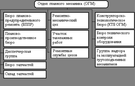 Ремонтную службу предприятия возглавляет отдел главного механика предприятия (ОГМ). Структура ремонтной службы представлена на рис. 1.1.