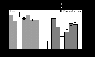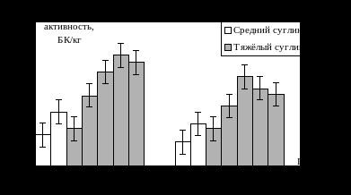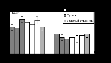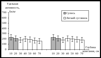 На глубине 70 см лёгкие суглинки накапливали равное или меньшее количество радионуклида, чем тяжелые, поэтому можно говорить о прямой зависимости распределения элемента от механического состава почвы.