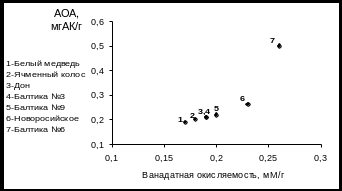 Рис. 2 – Оценка качественного соответствия АОА и ванадатной окисляемости для пива