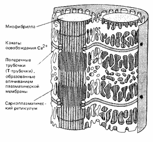 Рис. 6. Система мембран, передающая сигнал от плазмалеммы мышечной клетки ко всем миофибриллам