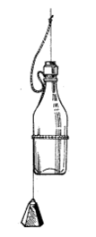 Опустив бутылку на нужную глубину (главное, чтобы она тонула, для этого и нужен груз), необходимо выдернуть пробку – поэтому затыкать ее туго не следует. Дав бутылке время наполниться на нужной глубине (1–2 мин), ее вытаскивают на поверхность. Делать это следует как можно более энергично – при большой скорости подъема и узком горлышке вода из вышележащих слоев практически не попадет внутрь.