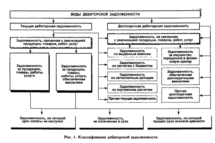 Классификацию дебиторской задолженности представлено на рис. 1.