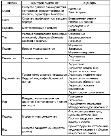 С целью проведения единой для всех генетических разновидностей ландшафтов классификации произведена дифференциация этих комплексов на основе генетического, структурно-морфологического и динамического принципов. Это позволило учесть не только основные признаки различных таксонов ландшафтов, но и показать тесную связь их в единой цепи ледового литоландшафтогенеза, раскрыть структурную организацию от вида до отдела ландшафтов. Рассмотрим это несколько подробнее в соответствии с приведенной классификационной таблицей.