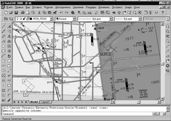Рис. 1. Фрагмент электронного плана в системе AutoCAD 2000.