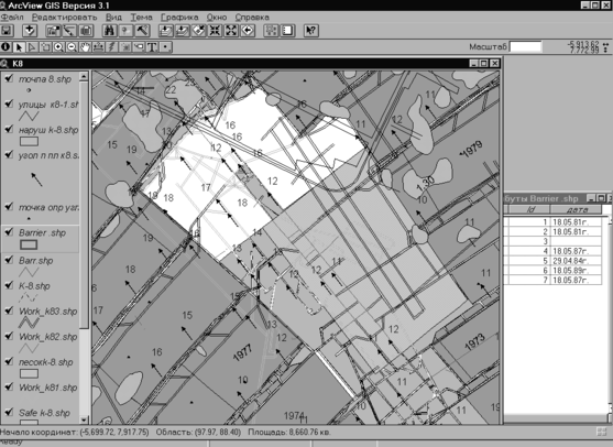 Рис. 2. Фрагмент электронного плана в системе ArcView 3.1.