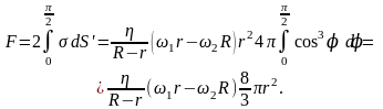 В выражении А = FL будет выполняться условие 1r = 2R. В этом случае сила вязкости трения между двумя сферами будет равна нулю. Найдем